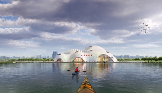 Dấu ấn đặc biệt nhất của nhà hát chính là kiến trúc mái vòm, lấy cảm hứng từ những gợn sóng Hồ Tây, có kết cấu siêu mỏng, siêu chịu lực và được phủ lên lớp vật liệu tạo hiệu ứng ngọc trai, để có thể phản chiếu màu sắc mặt nước Hồ Tây theo chuyển động của thời gian trong ngày.
