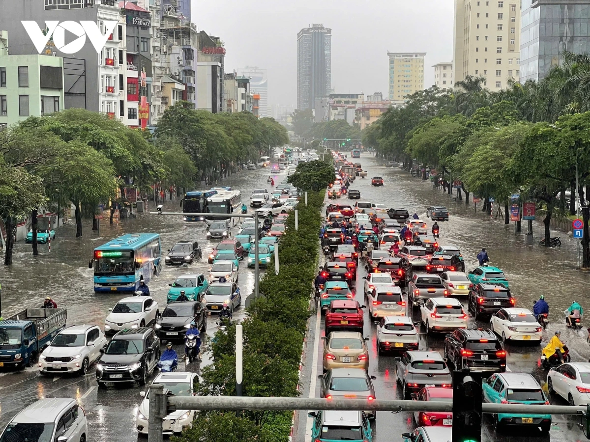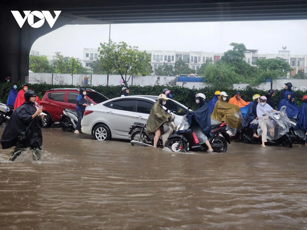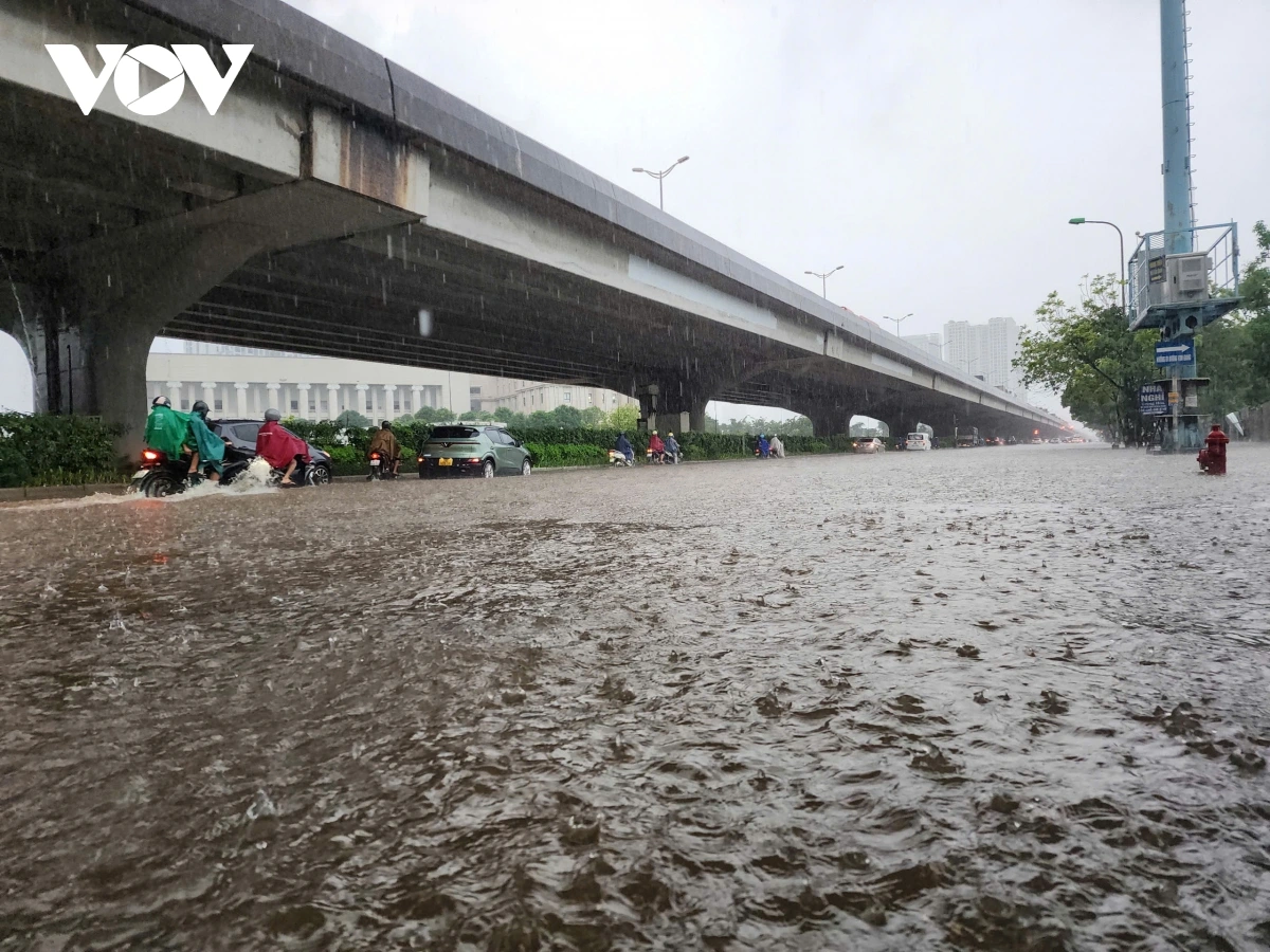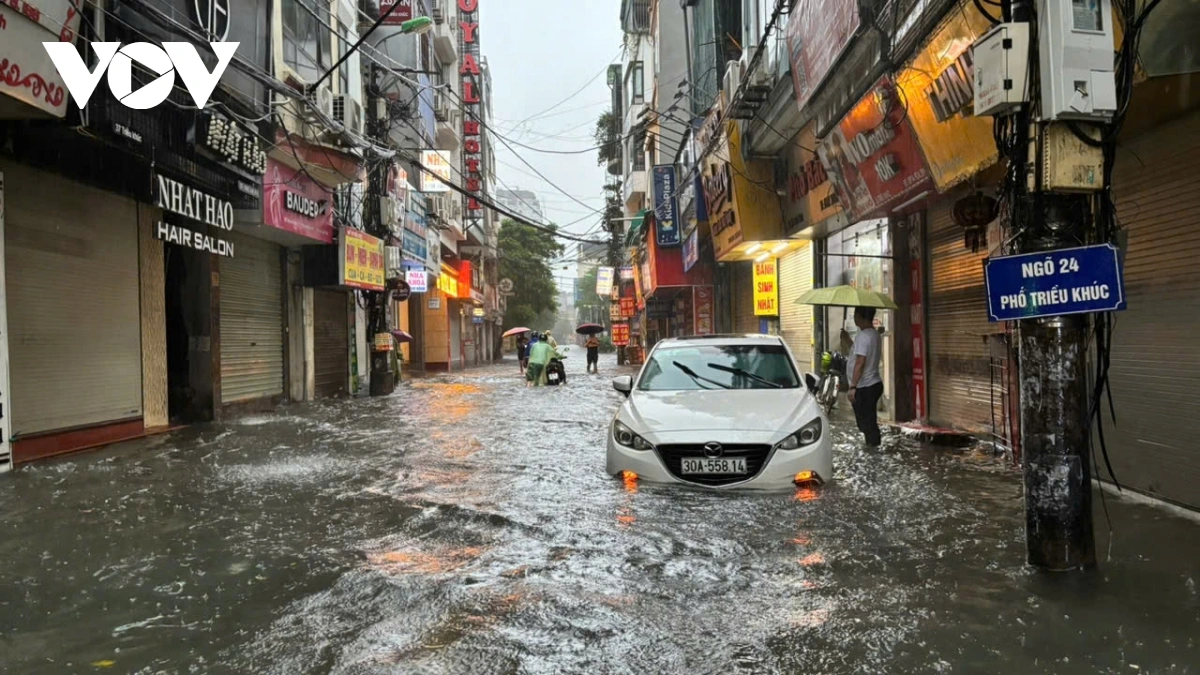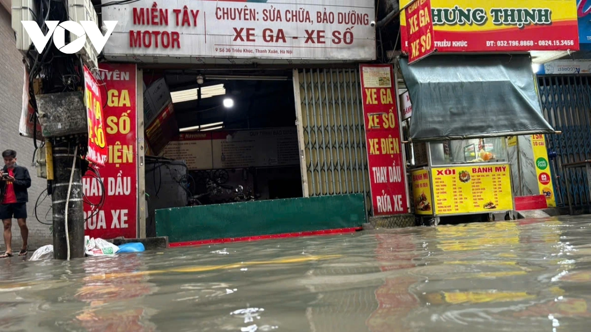 Ghi nhận của PV Lê Hải/VOV.VN tại phố Triều Khúc nước dâng cao khoảng 80 cm, các phương tiện tham gia giao thông qua đây rất khó khăn, nhiều phương tiện bị chết máy. Trong các đợt mưa lớn trước đó, Triều Khúc luôn là nơi bị ngập sâu và thoát nước khá lâu sau dù trời đã hết mưa.