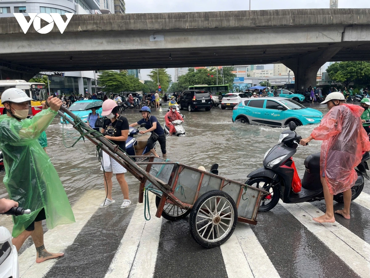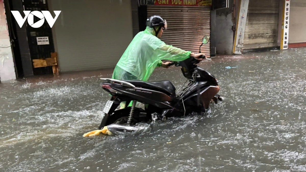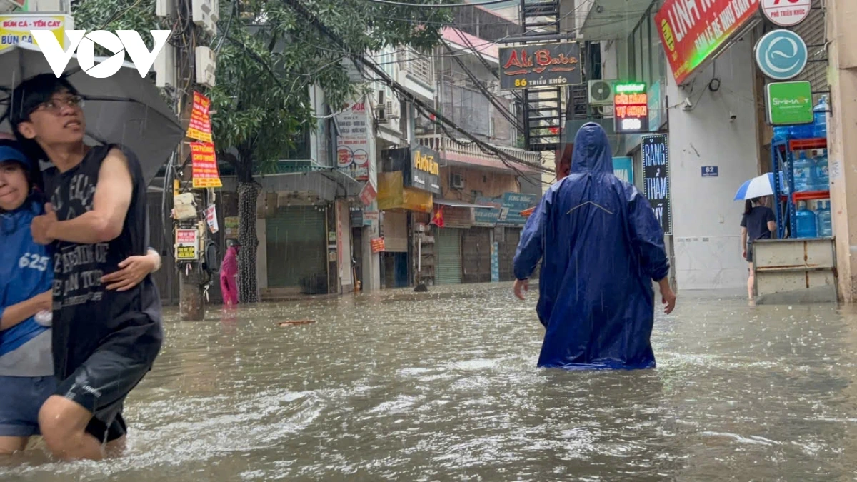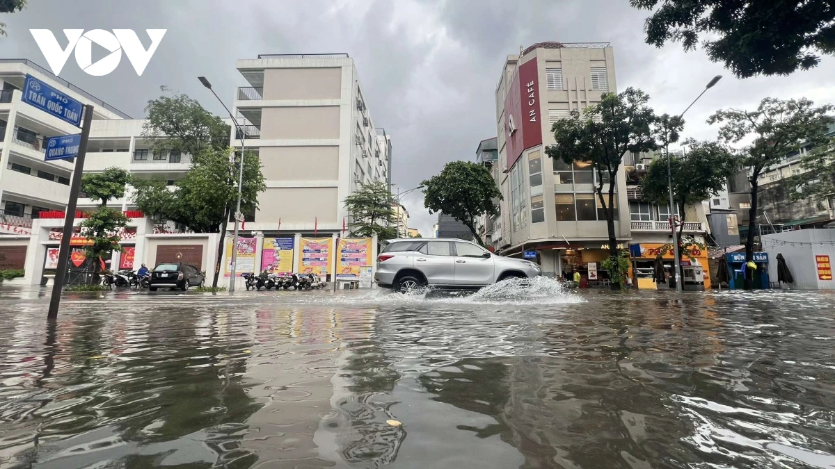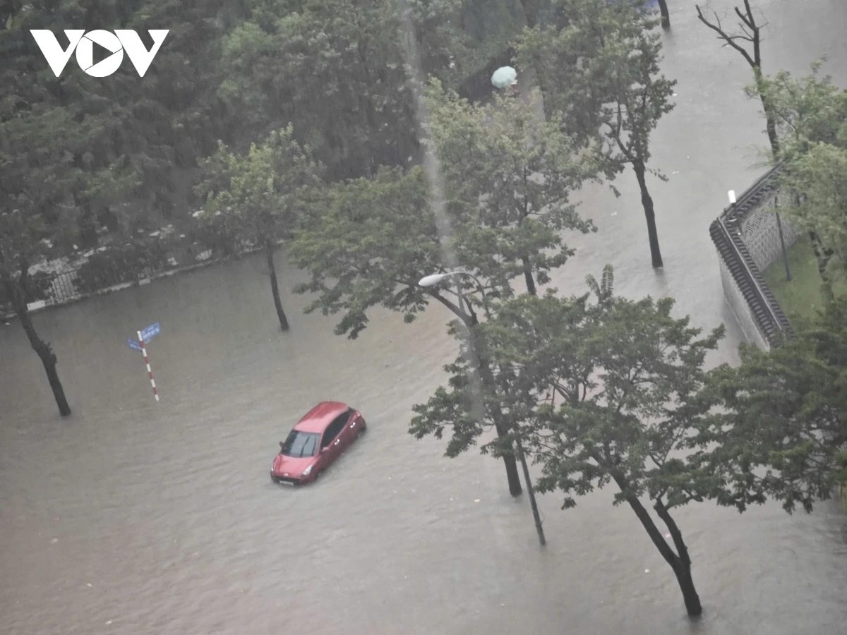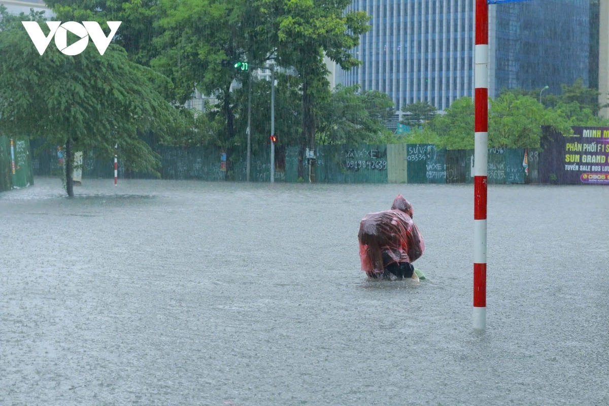 Ghi nhận của PV Lê Hải/VOV.VN tại phố Triều Khúc nước dâng cao khoảng 80 cm, các phương tiện tham gia giao thông qua đây rất khó khăn, nhiều phương tiện bị chết máy. Trong các đợt mưa lớn trước đó, Triều Khúc luôn là nơi bị ngập sâu và thoát nước khá lâu sau dù trời đã hết mưa.