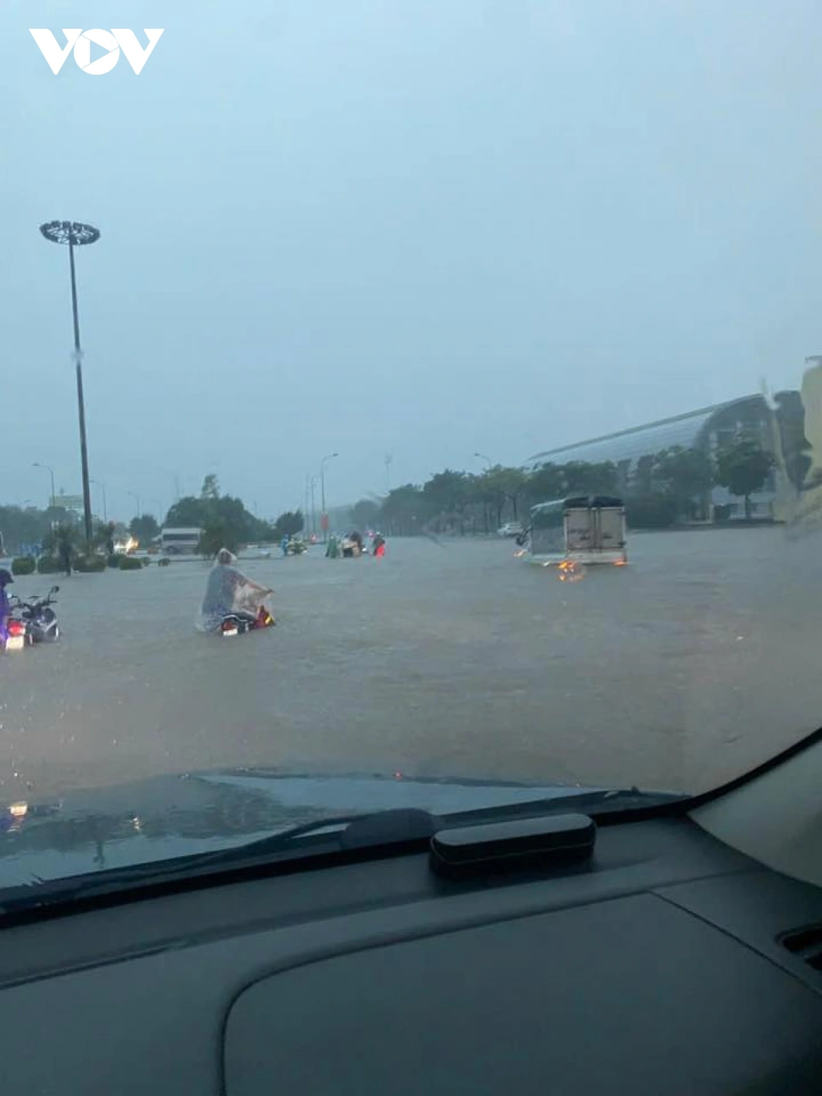 Cũng theo phóng viên Văn Ngân/VOV.VN: Tại nút giao Khuất Duy Tiến - Trần Duy Hưng, do mực nước ngập sâu, tình trạng kẹt xe diễn ra nghiêm trọng. Có những phương tiện mất hơn 3 giờ nhưng vẫn chưa di chuyển qua khu vực này.