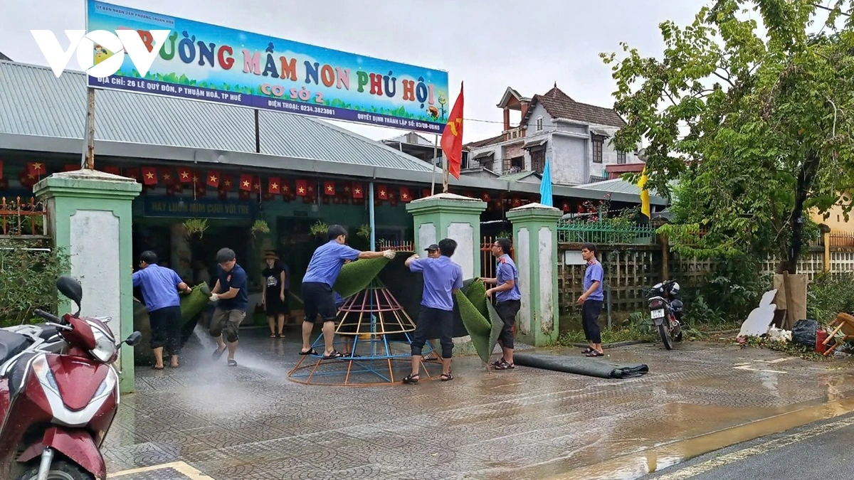 Các cơ quan, đơn vị, trường học, tổ dân phố trên địa bàn thành phố Huế huy động lực lượng dọn dẹp, thu gom bùn đất, tiêu độc khử trùng nguồn nước, làm sạch khu dân cư và các khu vực công cộng.