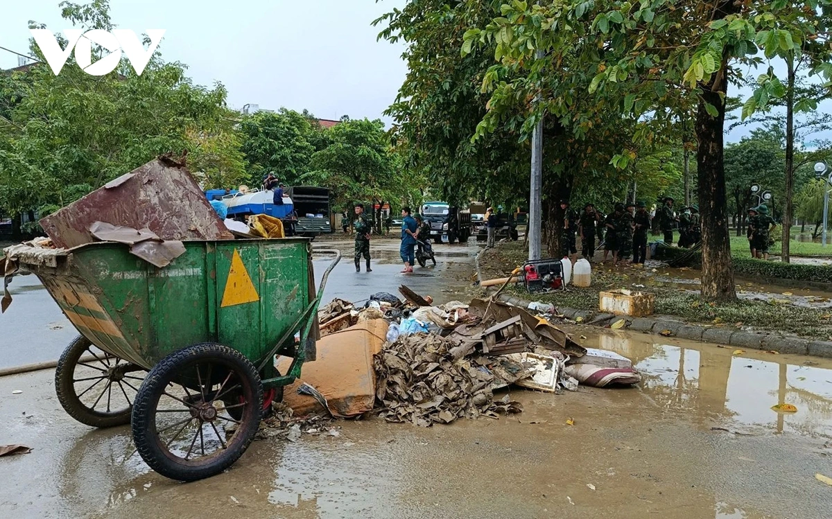 Trong đợt ra quân dọn vệ sinh sau lũ lần này có sự hỗ trợ tích cực của hàng trăm cán bộ, chiến sĩ các đơn vị quân đội đóng trên địa bàn và lực lượng Quân khu 4. Các lực lượng tiến hành tổng vệ sinh tại các khu vực chợ, trường học, tuyến đường chính và vùng dân cư bị ảnh hưởng nặng.