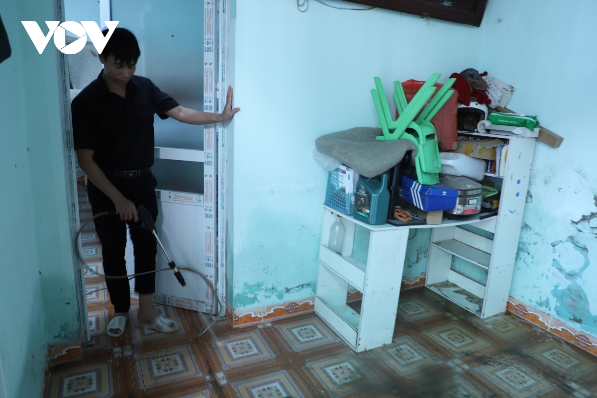 Ngôi nhà của bà Phạm Thị Sáng, 76 tuổi bị ngập sâu nhiều ngày, gia đình bà phải đi thuê trọ cách nhà gần 2 km.