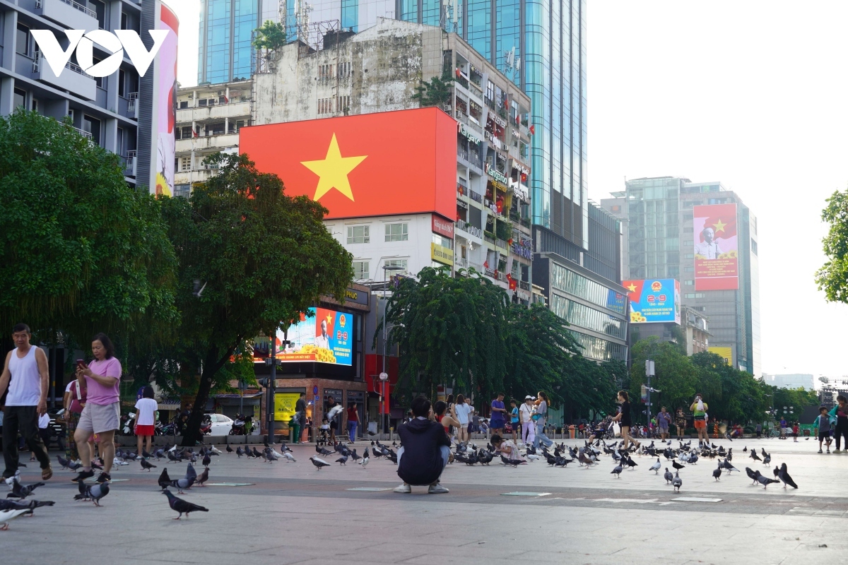 Most of the large screens in the city prominently display an iconic image of President Ho Chi Minh reading the Declaration of Independence, marking the establishment of the Democratic Republic of Vietnam.