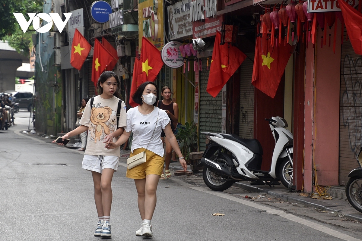 Hang Gai street transforms into a canvas of red and yellow as the national flag waves proudly.