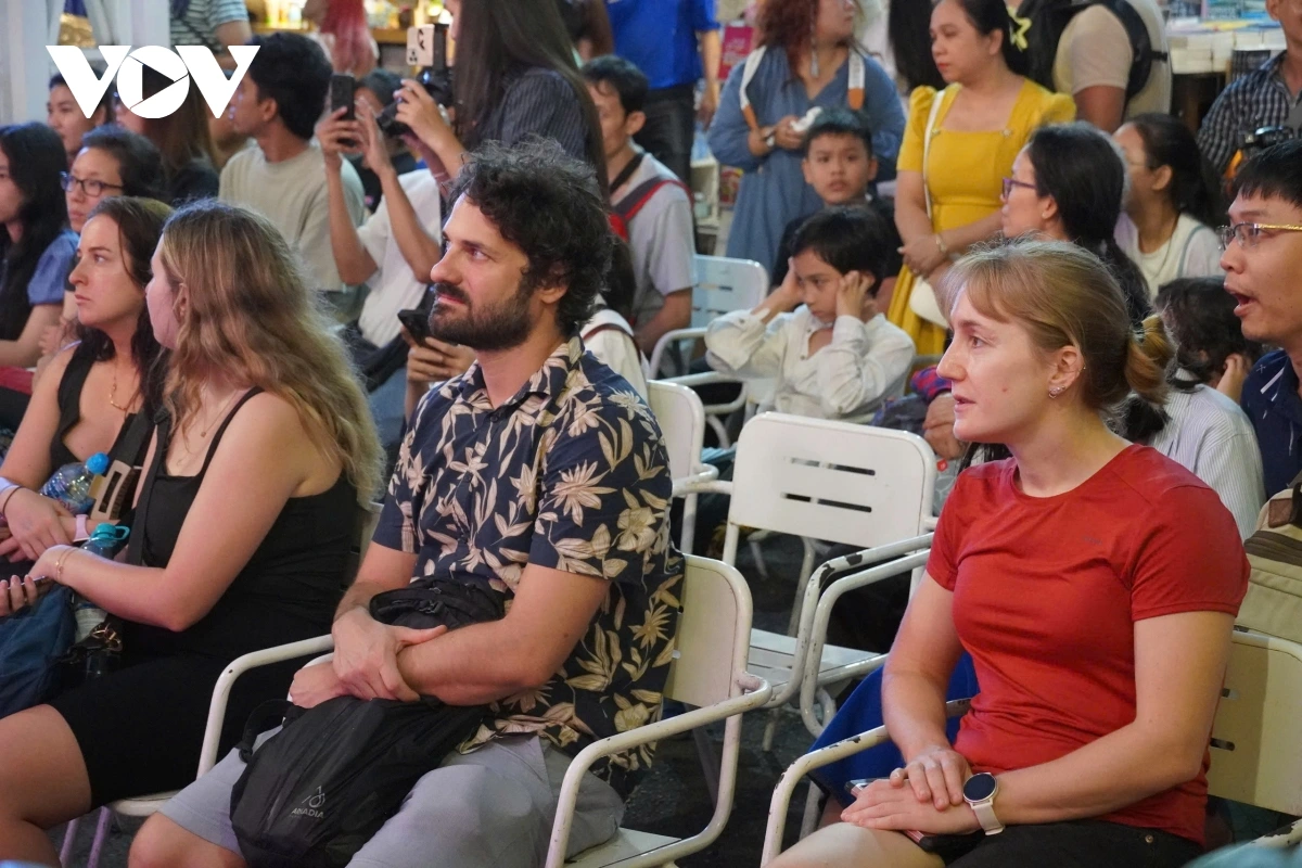 Khán giả nước ngoài xem một buổi biểu diễn hát bội tại Đường sách TP.HCM