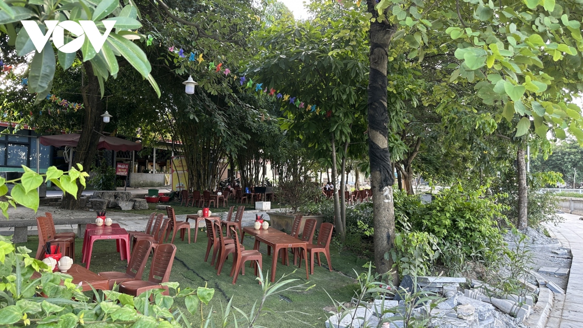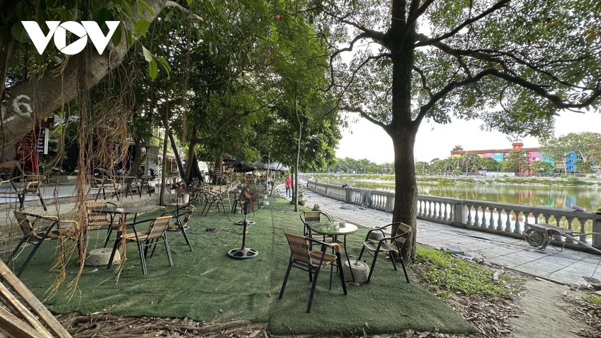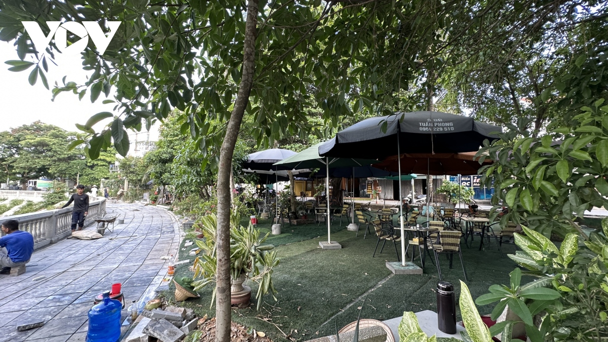 VOV.VN - Công trình vườn hoa hồ Thạch Bàn 1, 2 (phường Thạch Bàn, quận Long Biên, Hà Nội) được cải tạo khang trang hơn, người dân trên địa bàn có không gian vui chơi, tập thể dục quanh hồ. Thế nhưng công trình cải tạo đến đâu, nhà hàng, quán ăn xung quanh hồ lấn chiếm đến đó.