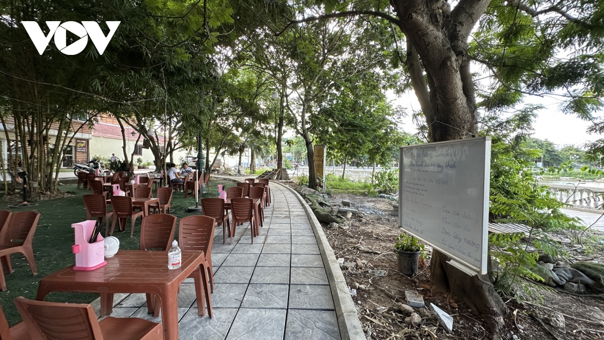 Con đường đi bộ ven hồ này vừa được thành hình đã được các chủ kinh doanh hàng ăn, uống bày biện bàn ghế.