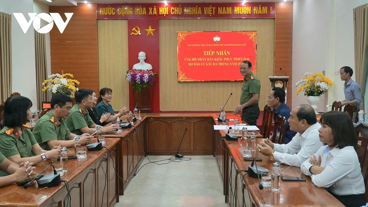VOV.VN - Sáng nay (14/11), tại trụ sở Ủy ban Mặt trận Tổ quốc tỉnh Quảng Ngãi, thừa ủy quyền lãnh đạo Bộ Công an, Đại tá Hồ Song Ân, Giám đốc Công an tỉnh Quảng Ngãi trao 5 tỷ đồng từ Quỹ Nghĩa tình đồng đội Công an nhân dân, hỗ trợ tỉnh Quảng Ngãi khắc phục hậu quả mưa bão.