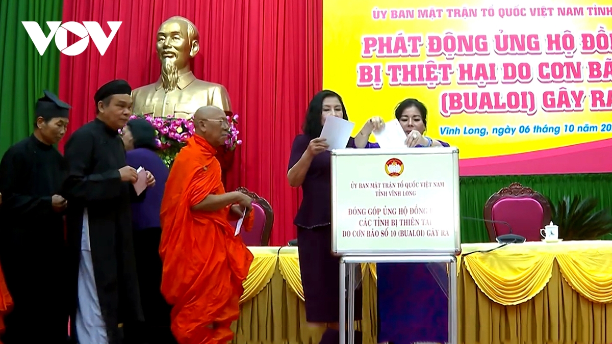 Theo PV Trà Vinh/VOV-ĐBSCL, phát huy truyền thống “tương thân tương ái” tốt đẹp của dân tộc, Ủy ban MTTQ Việt Nam tỉnh Vĩnh Long đã tích cực kêu gọi và nhận được sự hưởng ứng nhiệt tình, rộng rãi từ nhân dân, các cơ quan, tổ chức, doanh nghiệp, lực lượng vũ trang và các tổ chức tôn giáo trên địa bàn. Tất cả cùng chung tay sẻ chia cả về tinh thần lẫn vật chất, góp phần quan trọng hỗ trợ đồng bào các tỉnh đang gánh chịu thiệt hại nặng nề do mưa bão, lũ lụt gây ra.