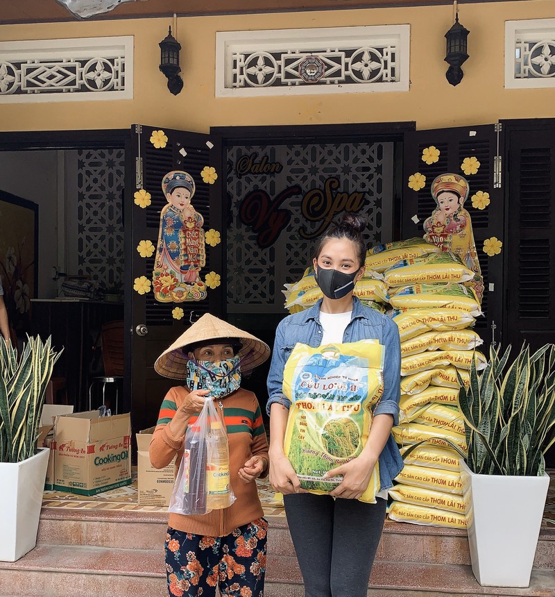 Trước đó khi dịch vừa bùng phát, cô cùng từng Hội Liên hiệp Thanh niên Việt Nam TP.HCM tham gia ngày hội hiến máu và trao quà cho bệnh viện dã chiến cùng nhiều mái ấm tình thương khác.
