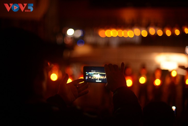 | Ca khúc Silent Night được cất lên trang nghiêm và sâu lắng trong ánh sáng lung linh của một trăm ngọn nến. |