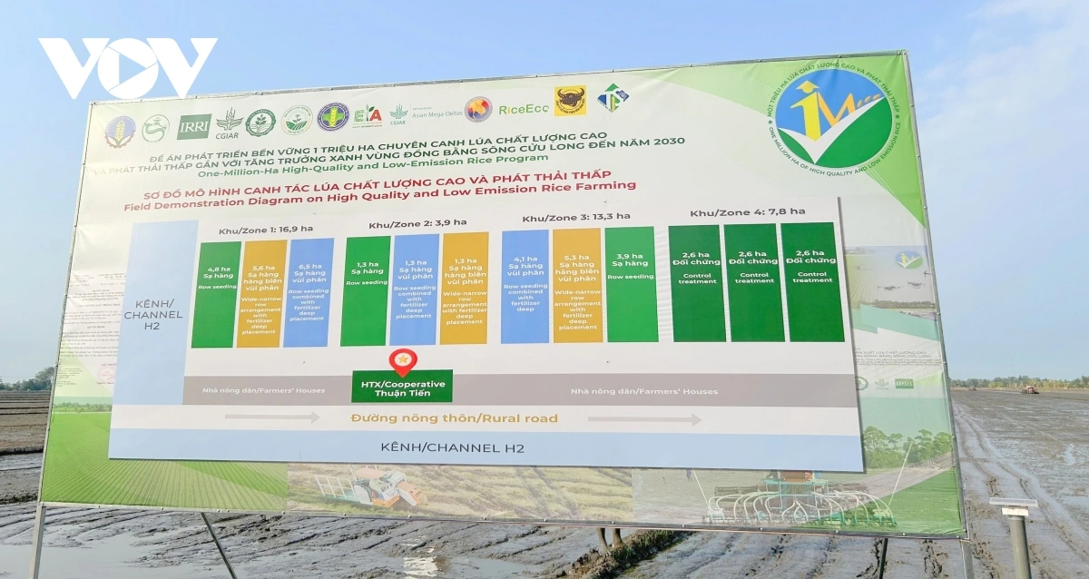 VOV.VN - Dự án Hỗ trợ hạ tầng và kỹ thuật cho sản xuất lúa chất lượng cao, phát thải thấp vùng Đồng bằng sông Cửu Long (ĐBSCL) là bước đi quan trọng trong Đề án 1 triệu hecta lúa chất lượng cao, phát thải thấp gắn với tăng trưởng xanh.