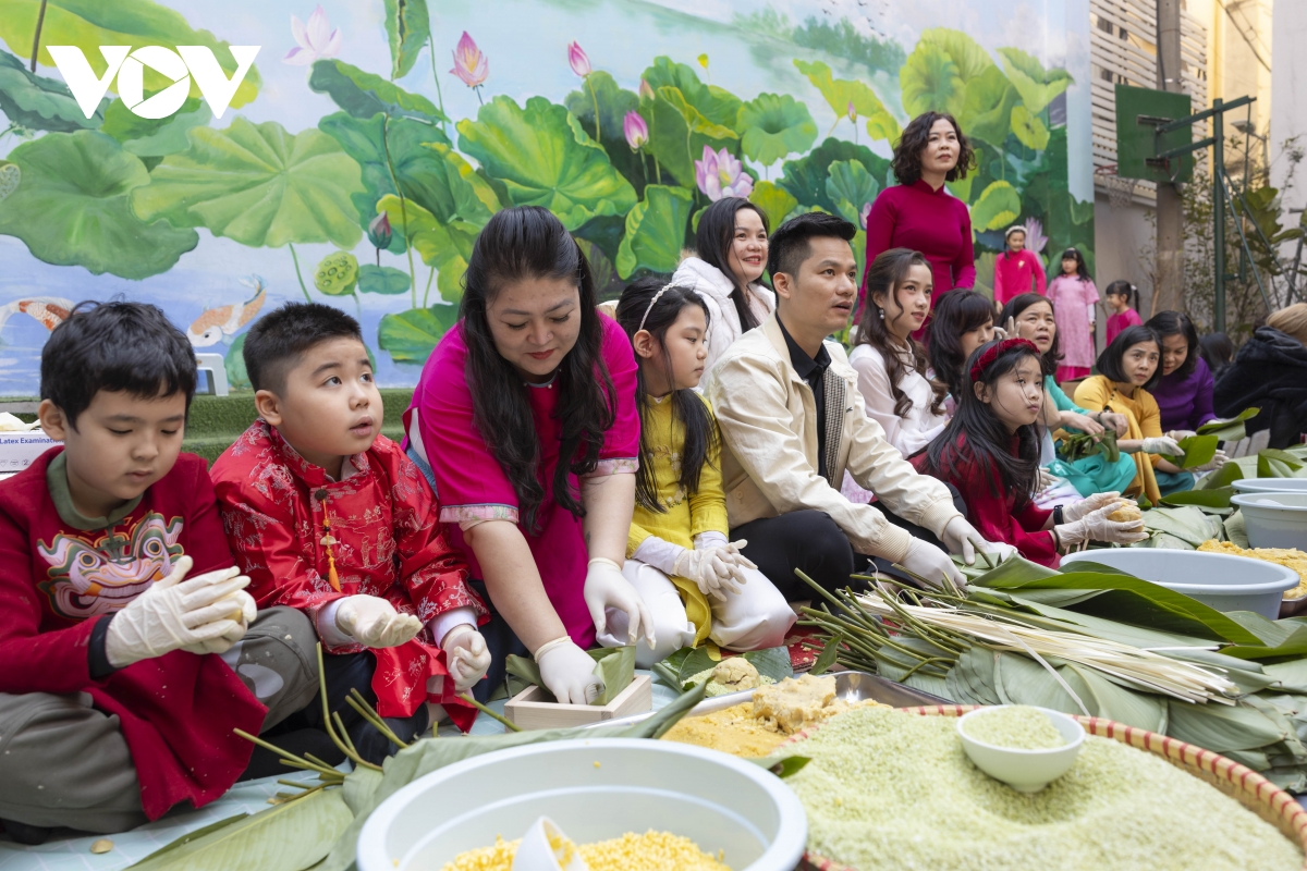 VOV.VN - Hôm nay (16/1), tại Trường Tiểu học Chu Văn An (Tây Hồ, Hà Nội), diễn ra hoạt động "Gói bánh chưng, gói trọn yêu thương". Hàng trăm học sinh, sinh viên tại Hà Nội dưới sự hướng dẫn của các đầu bếp đã tham gia gói 2.000 chiếc bánh chưng xanh tặng trẻ em vùng cao dịp Tết.