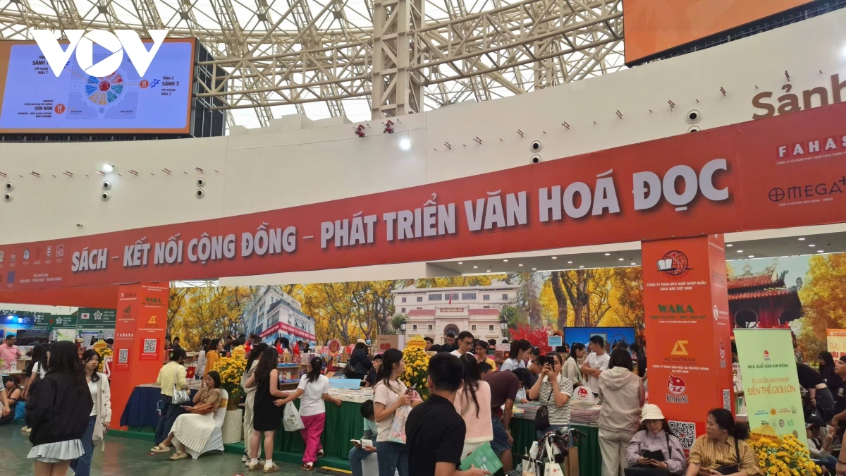 Ngay tại trung tâm triển lãm, khu vực “Sách – kết nối cộng đồng, phát triển văn hóa đọc” được bố trí theo hình vòng cung, chia thành các gian hàng theo chủ đề như khoa học, văn học nghệ thuật, mỹ thuật, toán học, sách thiếu nhi… Độc giả có thể chọn và đọc ngay tại chỗ. Điểm nhấn năm nay là khu trưng bày nền tảng đọc số và ứng dụng nghe sách – biểu hiện rõ xu hướng chuyển đổi số trong lĩnh vực xuất bản.