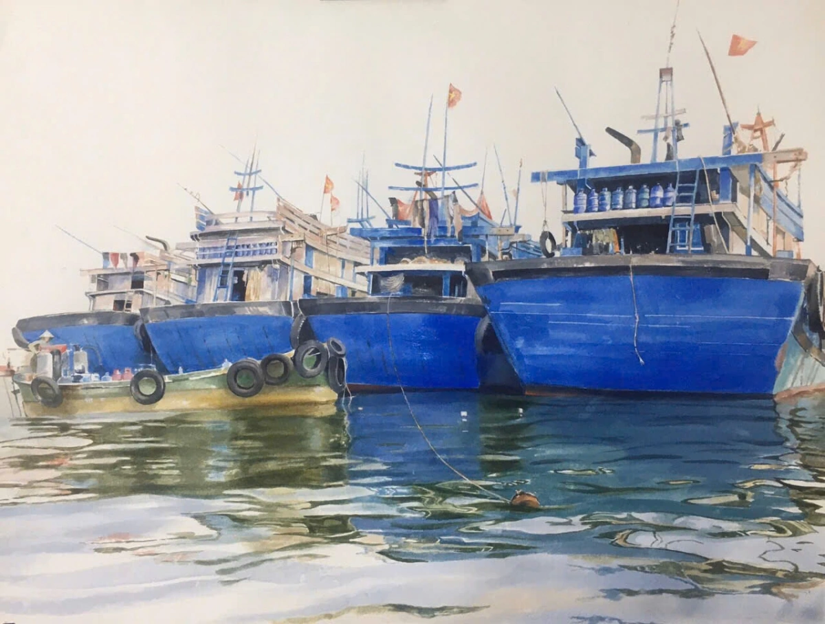 Hơi thở biển Hải Phòng trong tranh màu nước của họa sĩ Nguyễn Đức Quang