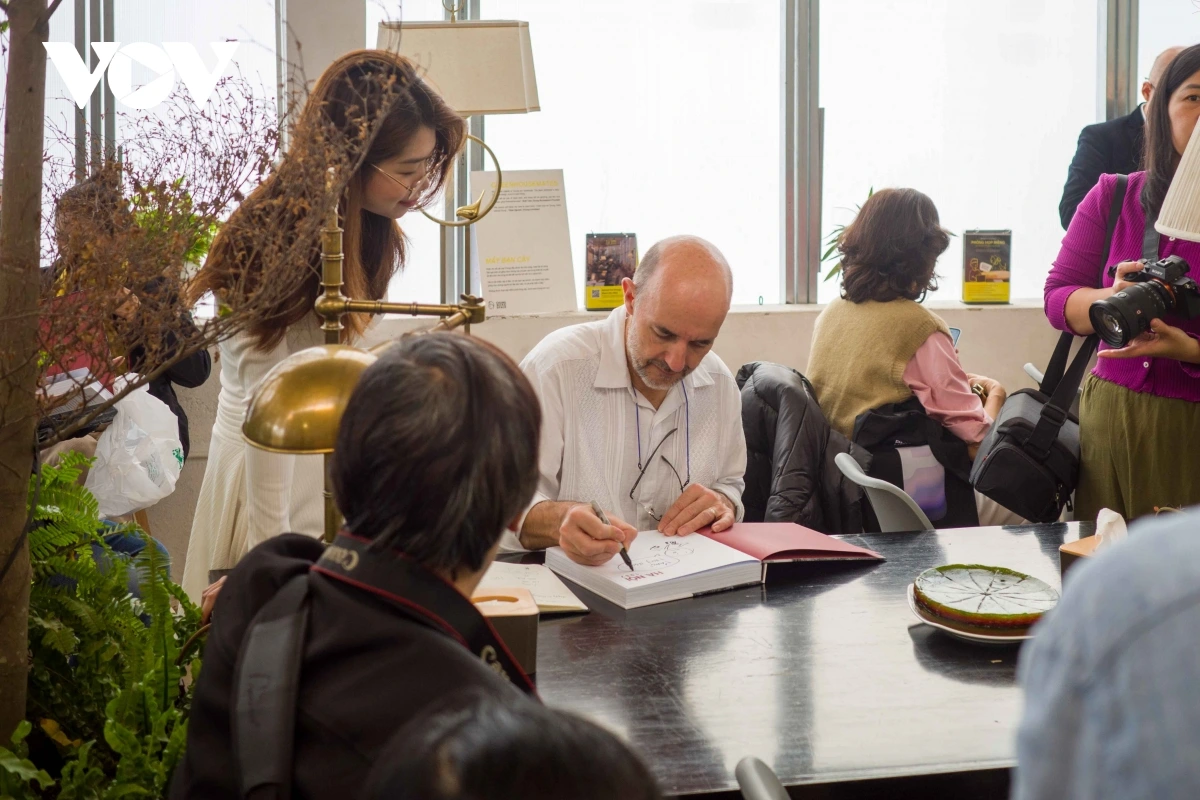 Jean-Charles Sarrazin ký tặng sách cho những độc giả yêu mến Hà Nội xưa và các nhiếp ảnh gia quan tâm.