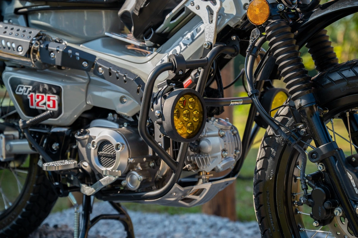 Để đáp ứng nhu cầu thực tế của người ưa dịch chuyển, Honda còn trang bị cho CT125 giá chở hàng lớn kích thước 409mm × 477mm cùng 4 móc treo tiện dụng, giúp người lái dễ dàng mang theo đồ cắm trại hoặc hành lý cho những chuyến đi dài. Ngoài ra, hệ thống chống bó cứng phanh ABS trên bánh trước giúp tăng độ an toàn và ổn định khi phanh gấp trên đường trơn trượt.