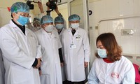 | Bệnh nhân giả định tại buổi diễn tập điều trị viêm đường hô hấp cấp do chủng mới virus Corona gây ra. |