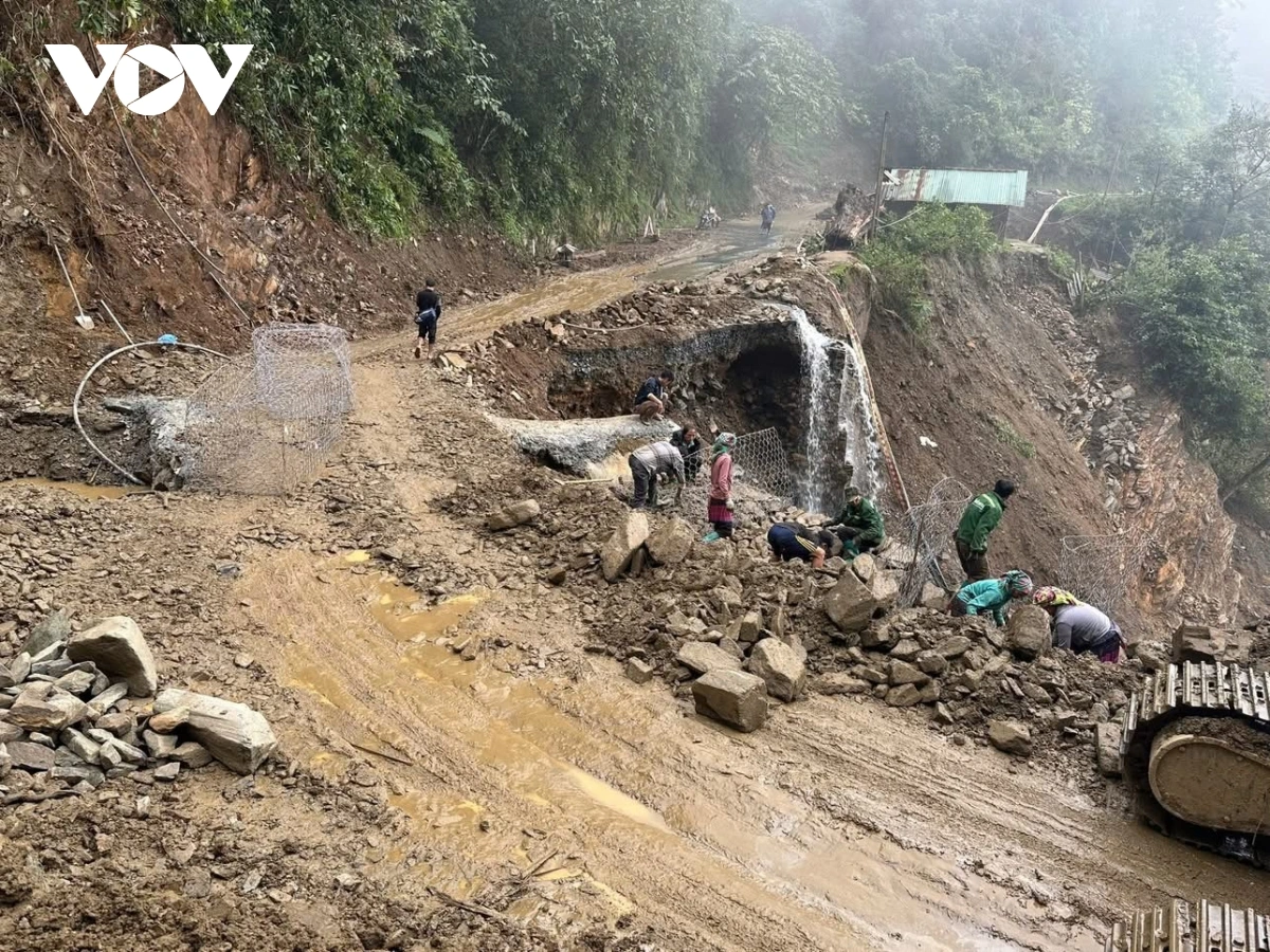 VOV.VN - Ngành chức năng tỉnh Lào Cai đã có hướng dẫn người dân di chuyển qua đèo Khau Phạ, khu vực vừa khắc phục tạm thời sau sạt lở lớn, km 269+750, Quốc lộ 32 thuộc Thôn Tà Sung, xã Tú Lệ.