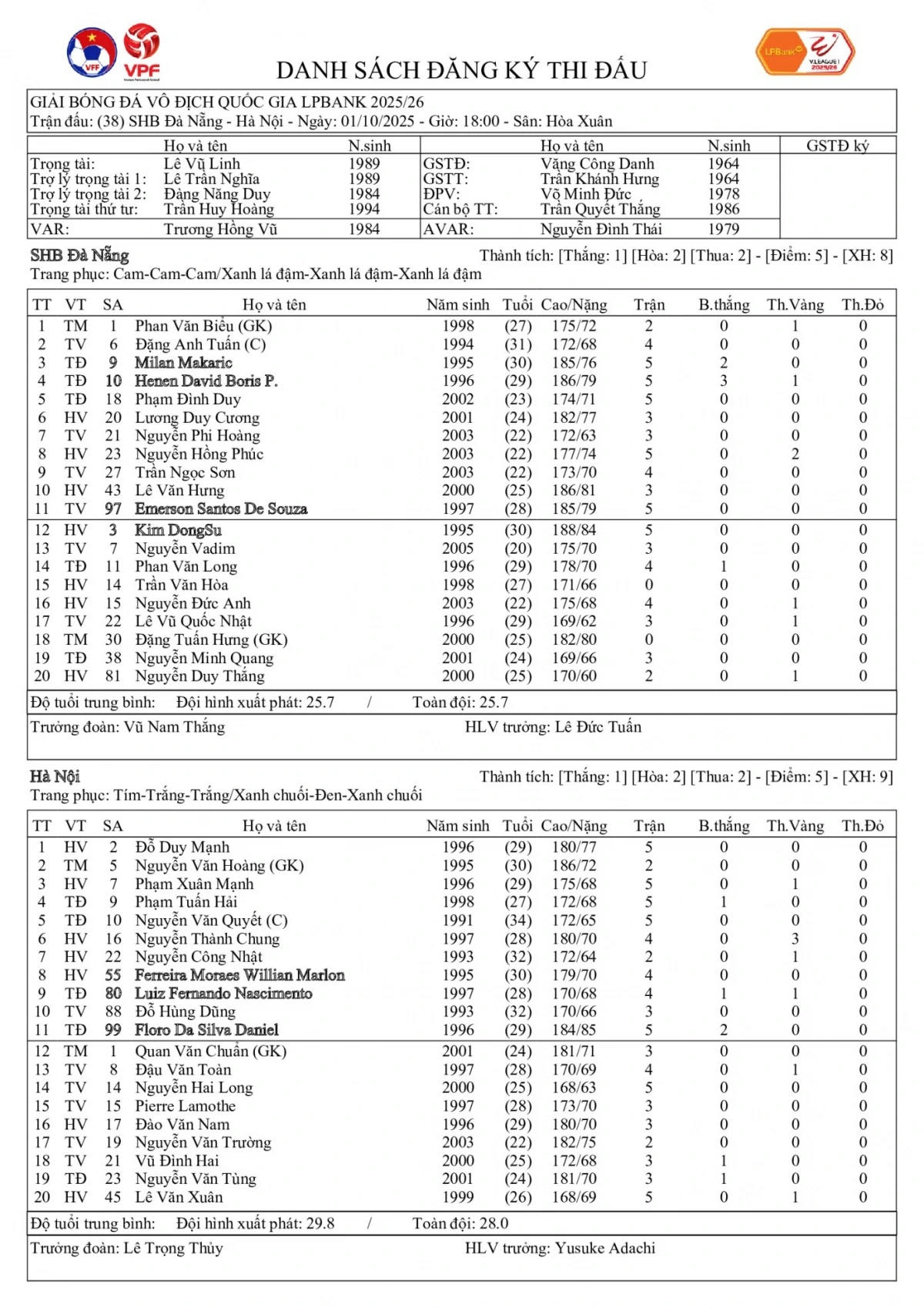 Trong khi Hà Nội FC đang dần hồi sinh dưới thời HLV tạm quyền Yusuke Adachi sau giai đoạn khủng hoảng, thì Đà Nẵng dưới sự chỉ đạo của HLV Lê Đức Tuấn cũng đang rất quyết tâm khẳng định mình. Cán cân của trận đấu đang nghiêng về một nghịch lý thú vị: Lịch sử đối đầu đang hoàn toàn ủng hộ đội khách, với việc Hà Nội FC thắng tới 12/19 lần gặp nhau gần nhất. Tuy nhiên, phong độ sân khách gần đây của đội bóng thủ đô lại rất đáng báo động với 3 trận thua liên tiếp.