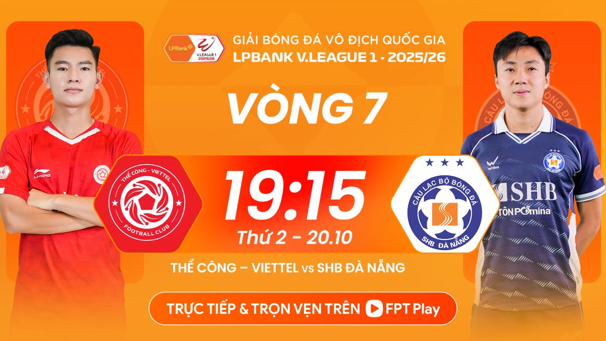 VOV.VN - Thể Công Viettel ngược dòng giành thắng lợi với tỷ số 2-1 trước Đà Nẵng trên sân nhà Hàng Đẫy trong khuôn khổ vòng 7 V-League 2025/2026 để vươn lên vị trí thứ 2 trên BXH chỉ kém đội đầu bảng Ninh Bình vỏn vẹn 2 điểm.