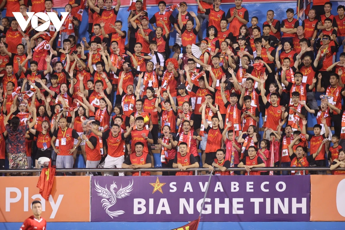 Rất đông khán giả có mặt trên sân Ninh Bình để theo dõi trận đấu.
