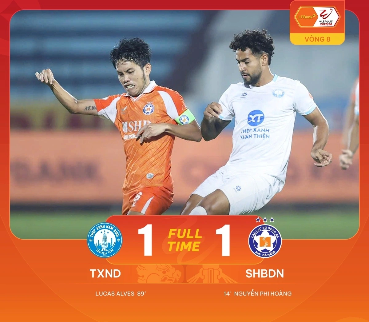 Kết quả vòng 8 V-League 2025/2026: Nam Định nhọc nhằn cầm hòa Đà Nẵng