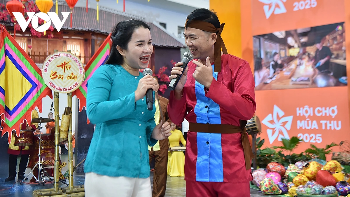 VOV.VN - Những âm thanh hô hát rộn ràng nổi bật lên giữa vô số âm thanh chào gọi từ các gian hàng tại Hội chợ Mùa Thu lần thứ nhất – năm 2025, mời gọi khách tham quan đến với sân khấu hô hát Bài chòi. Dường như những âm thanh rộn rã vui tươi hóm hỉnh của tiết mục hô hát Bài chòi có sức hấp dẫn đặc biệt.