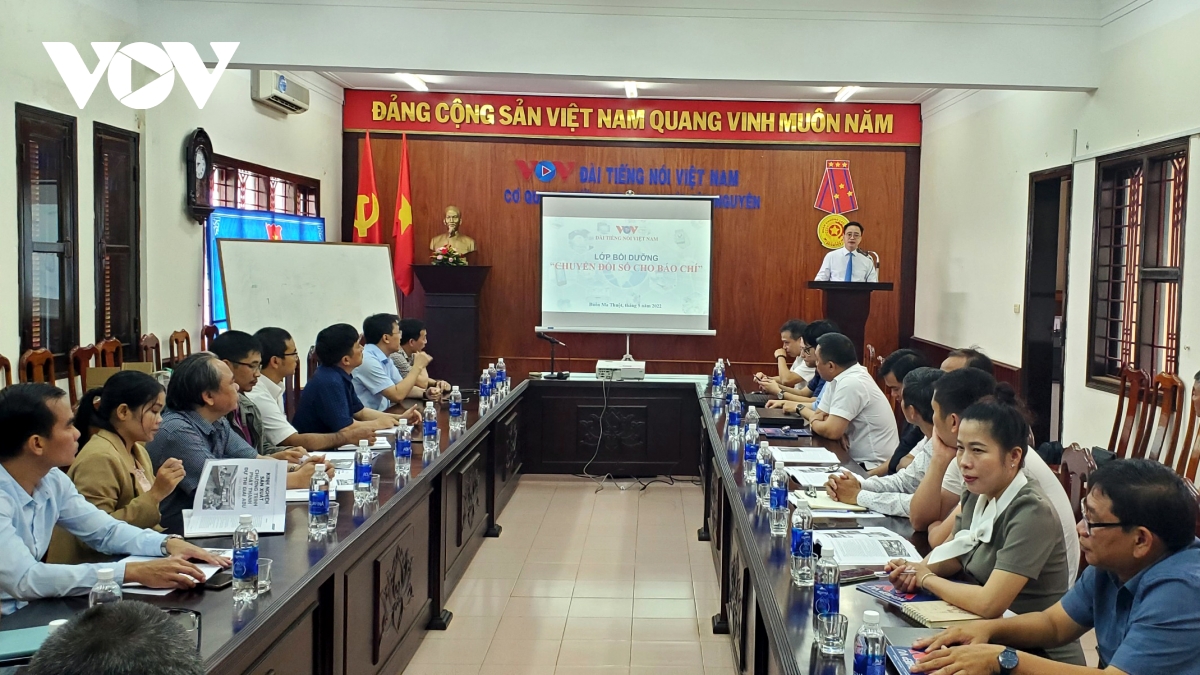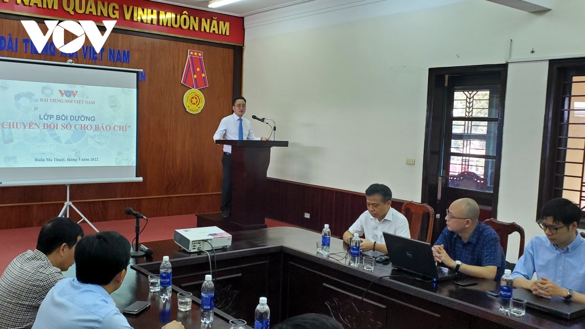 Trong 2 ngày 27 - 28/5, tại Cơ quan thường trú Đài Tiếng nói Việt Nam khu vực Tây Nguyên (VOV Tây Nguyên), Trung tâm Đào tạo, Bồi dưỡng nghiệp vụ truyền thông, Trung tâm R&D đã phối hợp cùng VOV Tây Nguyên, tổ chức lớp “Bồi dưỡng nghiệp vụ về chuyển đổi số cho báo chí” cho gần 40 học viên là những phóng viên (PV), biên tập viên (BTV) Đài Tiếng nói Việt Nam và các Đài PTTH Khánh Hòa, Phú Yên, Gia Lai, Đăk Nông, Lâm Đồng, Kon Tum, Đắc Lắc.