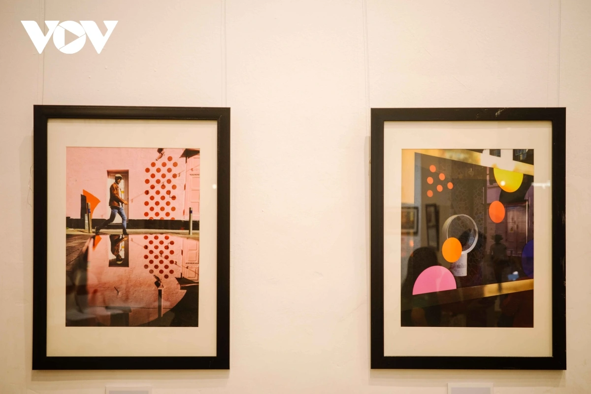 Một góc trưng bày trong triển lãm, nơi hình ảnh những con phố nhỏ, gương mặt người qua đường và ánh đèn phản chiếu tạo nên nhịp thở của đô thị đương đại.