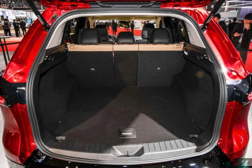 Được thiết kế theo khái niệm 'Wearable Gear' mới của thương hiệu, chiếc SUV này có vẻ ngoài khá quen thuộc nhưng có những thay đổi đáng chú ý để bạn không nhầm lẫn với mẫu xe cũ. Phía trước có lưới tản nhiệt 7 điểm viền đen nối với đèn LED ban ngày dạng tầng, hốc bánh hơi vuông hơn và phần đuôi với đèn hậu hình chữ L giống mẫu CX-60/CX-80, kèm ống xả đôi.
