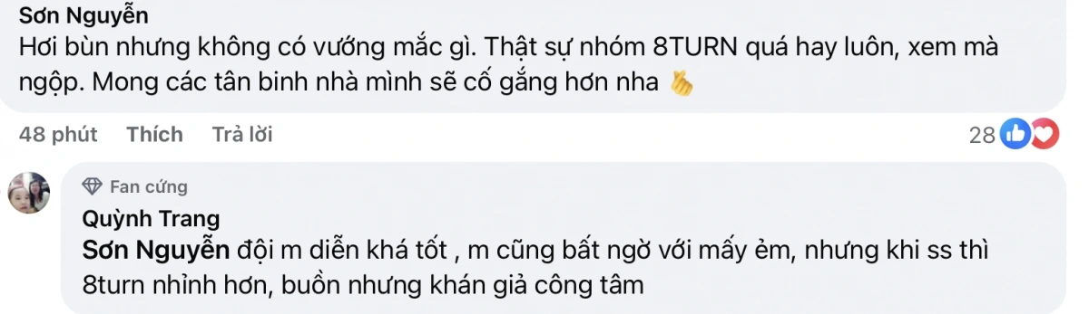 “Rốt cuộc cũng đến ngày này rồi…”, “Như show Hàn chuyên nghiệp luôn”, “Đem đi debut luôn, không có gì phải chờ nữa”, “Tưởng đang coi của Mnet, KBS không đó”, “Đối đầu đỉnh cao. Quá bất ngờ vì những Tân binh Việt Nam mới hơn 100 ngày huấn luyện…” – là những bình luận của khán giả khi chứng kiến hình mẫu nhóm nhạc nam chuẩn K-Pop lần đầu tiên xuất hiện trên sân khấu Việt.