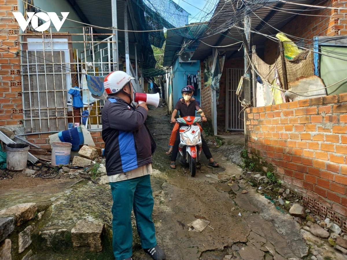Cán bộ thôn Thành Đạt, phường Nam Nha Trang, tỉnh Khánh Hòa thông báo bão đến người dân