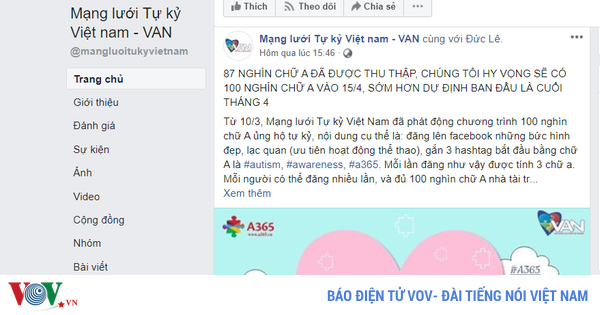 VOVVN - VOV.VN - Người dùng mạng xã hội Facebook đang chia sẻ rất nhiều thông tin 100.000 chữ A ủng hộ cho chứng tự kỷ. Thực hư việc này như thế nào?