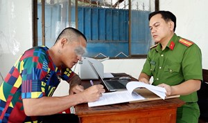 | Đối tượng Trần Văn Triệu tại cơ quan chức năng. |
