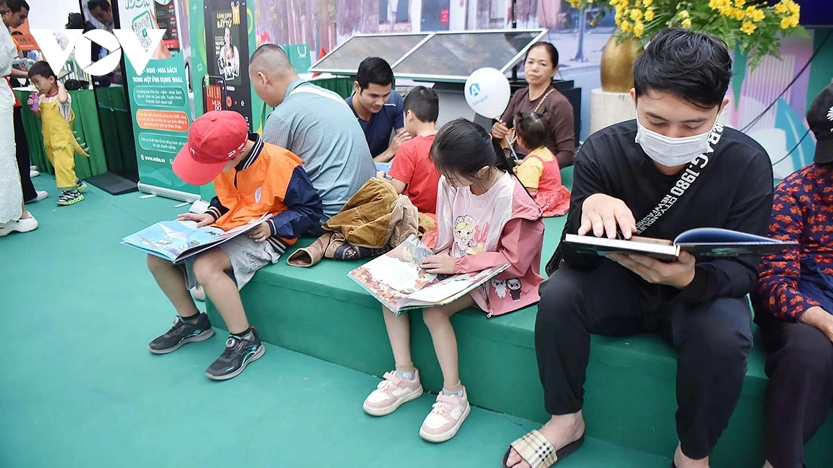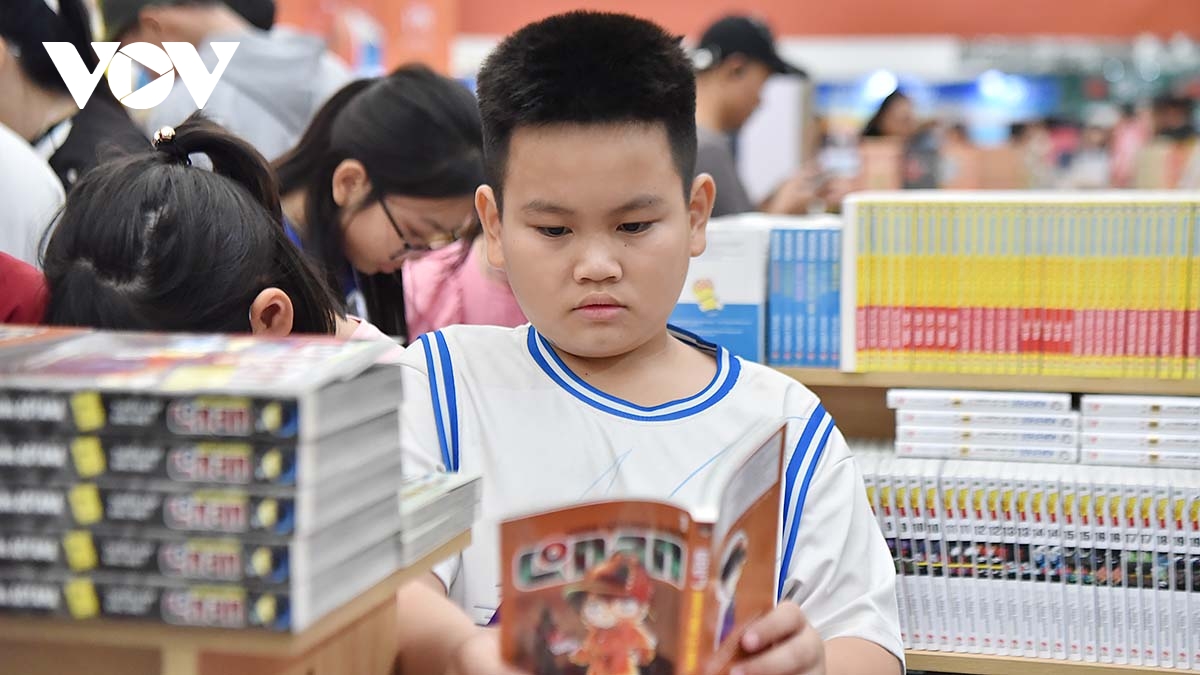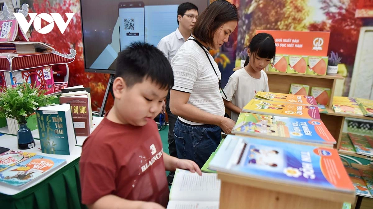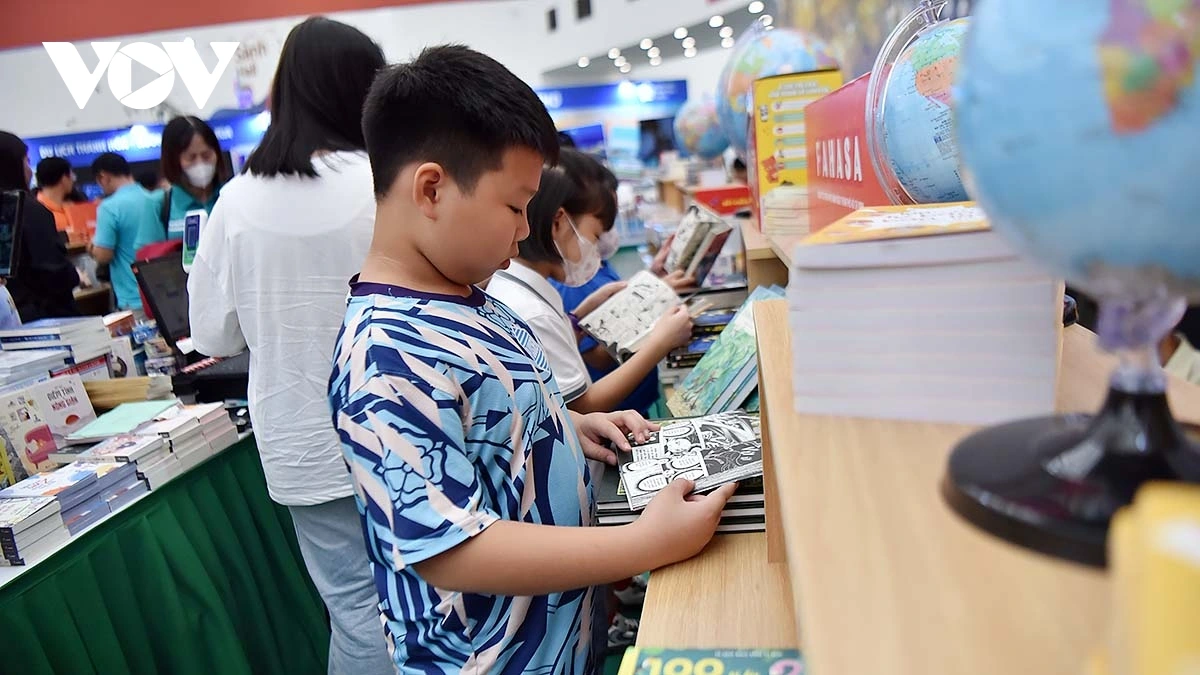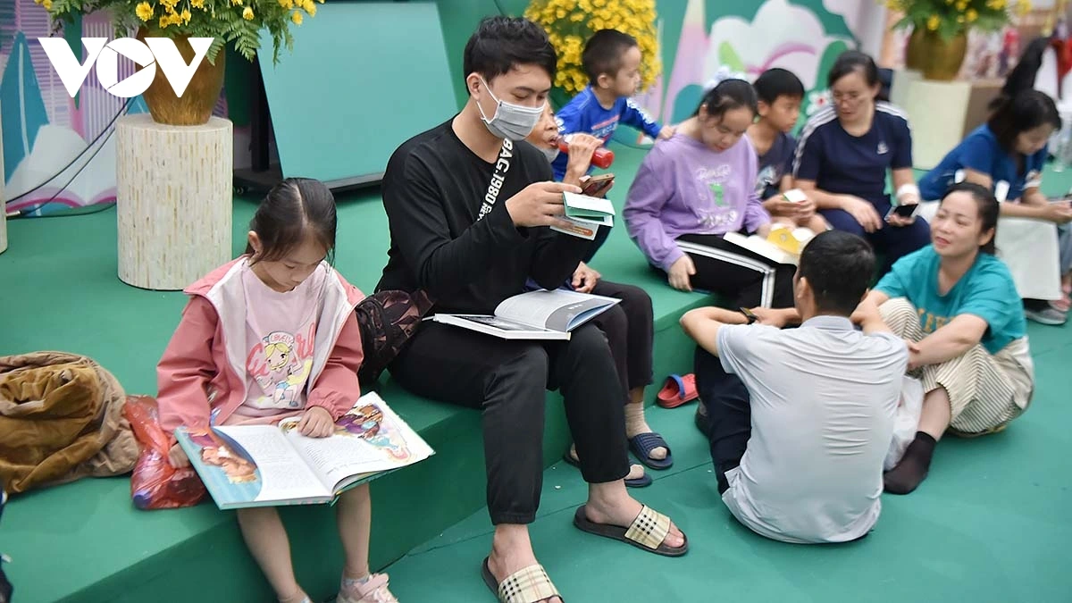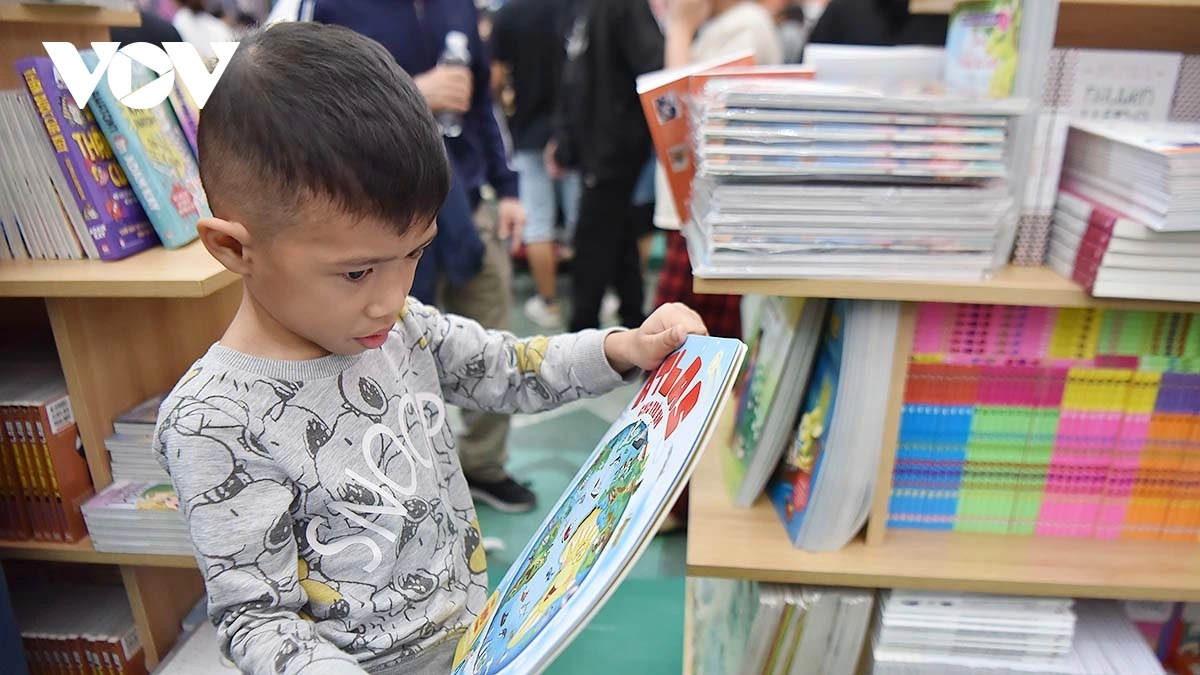Các em nhỏ cùng gia đình đến không gian xuất bản tại không gian xuất bản trong phân khu “Tinh hoa Văn hóa Việt Nam” của Hội chợ mùa Thu lần thứ nhất - 2025 thoải mái lựa chọn sách và có thể tìm cho mình không gian riêng để đọc, tìm hiểu ngay trong khu trưng bày.