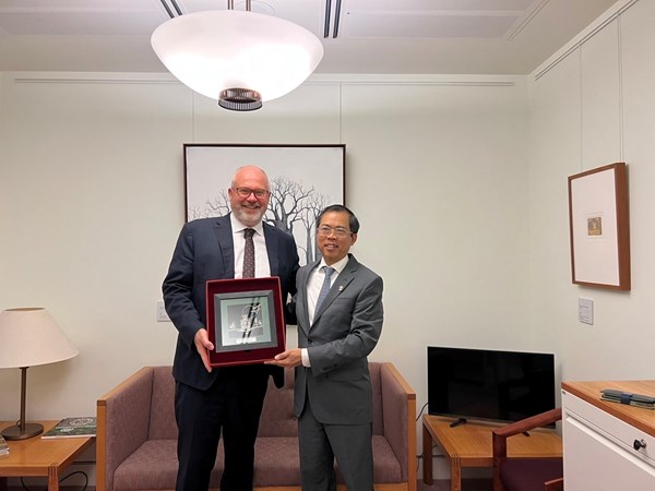 VOVVN - VOV.VN - Hôm nay 27/3, Đại sứ Việt Nam tại Australia Phạm Hùng Tâm đã gặp Thượng Nghị sỹ, Đồng Bộ trưởng Thương mại Tim Ayres tại trụ sở Nghị viện Australia.