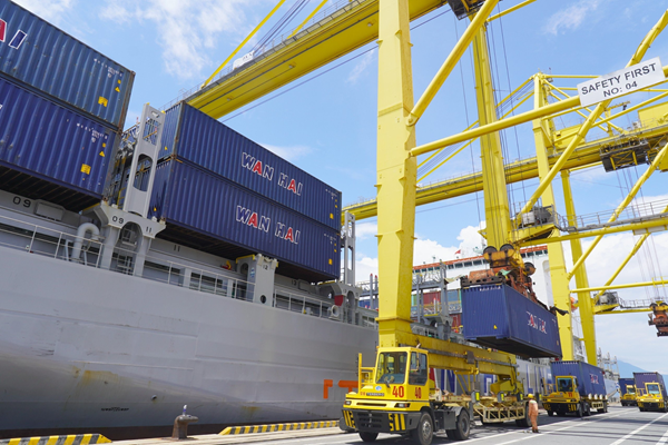 VOVVN - VOV.VN - Ngày 05/9/2023, cảng Đà Nẵng đón chuyến tàu container mang tên WanHai 362 do hãng tàu Wan Hai khai thác, thuộc tuyến dịch vụ AA3 kết nối Việt Nam đi thẳng đến Cảng...