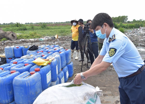 VOVVN - VOV.VN - Hôm nay 18/8, tại bãi rác Tân Tạo, thị trấn Châu Hưng, huyện Vĩnh Lợi, Cục Quản lý thị trường tỉnh Bạc Liêu phối hợp với các lực lượng chức năng tiến hành...