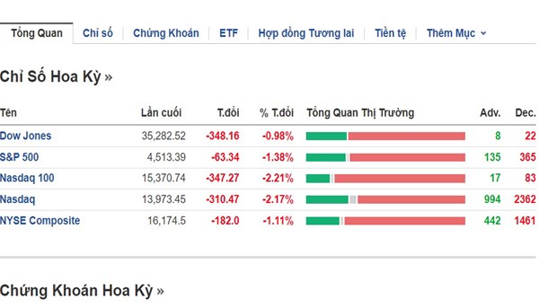 VOVVN - VOV.VN - Chỉ số giao dịch tương lai S&P 500 giảm 0,5% và chỉ số NASDAQ giảm 0.8%, nguy cơ tạo ra làn sóng bán cổ phiếu ồ ạt.