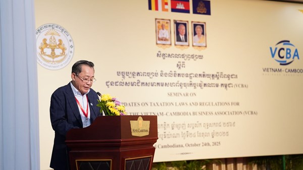VOVVN - VOV.VN - Hôm nay (24/10), tại thủ đô Phnom Penh, Hiệp hội Doanh nghiệp Việt Nam - Campuchia (VCBA) phối hợp với Tổng cục Thuế Campuchia đã tổ chức Hội thảo “Cập nhật Luật và Văn bản Quy phạm...