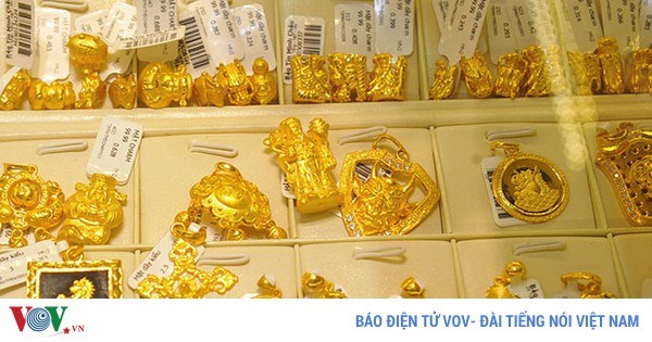 VOVVN - VOV.VN - Giá vàng SJC giảm về mức 46,65 triệu đồng/lượng trong khi giá vàng thế giới tăng vọt lên mức 1.510 USD/oz.