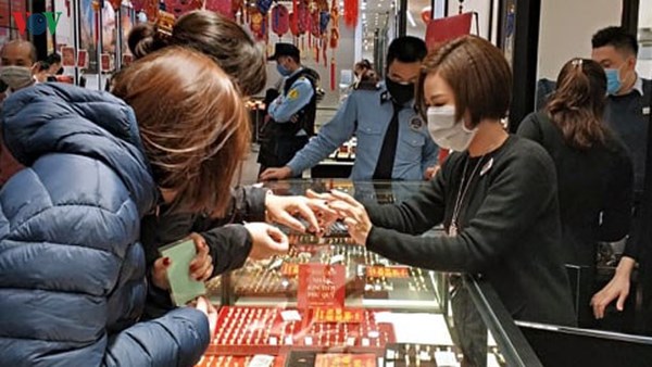 VOVVN - VOV.VN - Dù vẫn có khách hàng đến từ sớm để mua vàng nhưng do lượng khách ít nên việc chen chúc xếp hàng mua vàng không còn diễn ra như mọi năm.