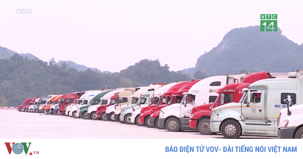 VOVVN - VOV.VN - Hơn 1000 xe container, chủ yếu là nông sản, đang phải "nằm chờ" tại các cửa khẩu lớn của tỉnh Lạng Sơn, Quảng Ninh, Lào Cai do ảnh hưởng của dịch bệnh.