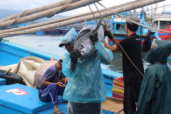 VOVVN - VOV.VN - Những ngày qua, nhiều tàu cá ngư dân thị xã Hoài Nhơn, tỉnh Bình Định đánh bắt chuyến biển đầu năm trở về Cảng cá Tam Quan, tỉnh Bình Định để bán cá....