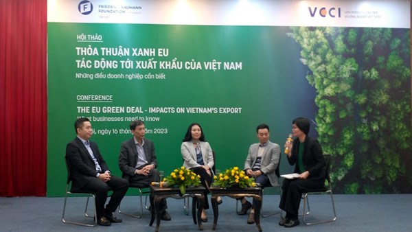 VOVVN - VOV.VN - Việc theo dõi và thích ứng với các chính sách trong khuôn khổ Thoả thuận Xanh EU liên quan tới sản phẩm của mình là đòi hỏi cấp bách đối với các DN...