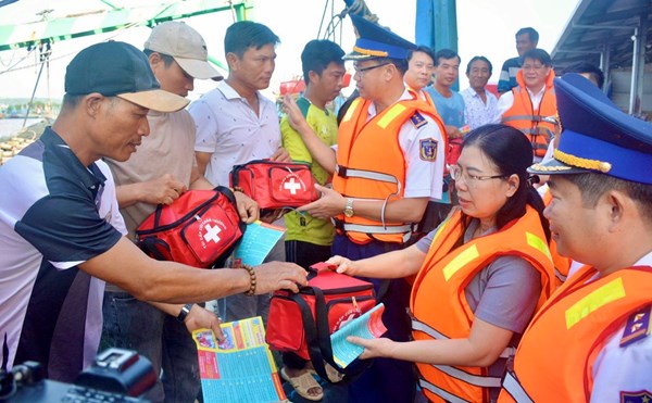 VOVVN - VOV.VN - Ngày 3/11, tại cảng cá Phan Rí Cửa, Lâm Đồng, Vùng Cảnh sát biển 3 đã tổ chức tuyên truyền, đối thoại với hơn 300 ngư dân về chống khai thác hải sản...