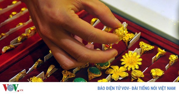 VOVVN - VOV.VN - Giá vàng SJC trên thị trường tăng mạnh lên mức 57,98 triệu đồng/lượng trong khi giá vàng thế giới tăng chậm lên 1.968 USD/oz.