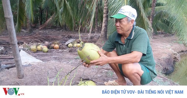 VOVVN - VOV.VN - Hiện nay, trái dừa thương phẩm tại tỉnh Bến Tre ở mức giá cao nhưng do ảnh hưởng của khô hạn, năng suất thấp, dẫn đến khan hàng.